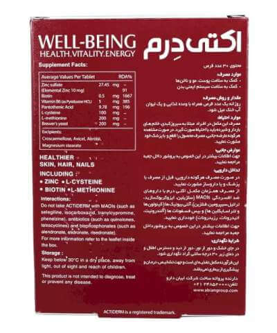- هر جعبه از مکمل اکتی درم مناسب برای استفاده 30 روز میباشد